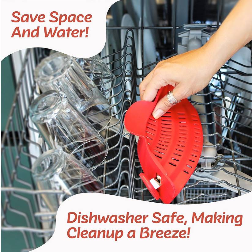 This food-grade silicone strainer clips onto the rim of any sized pot or bowl so you can rinse or strain in seconds.